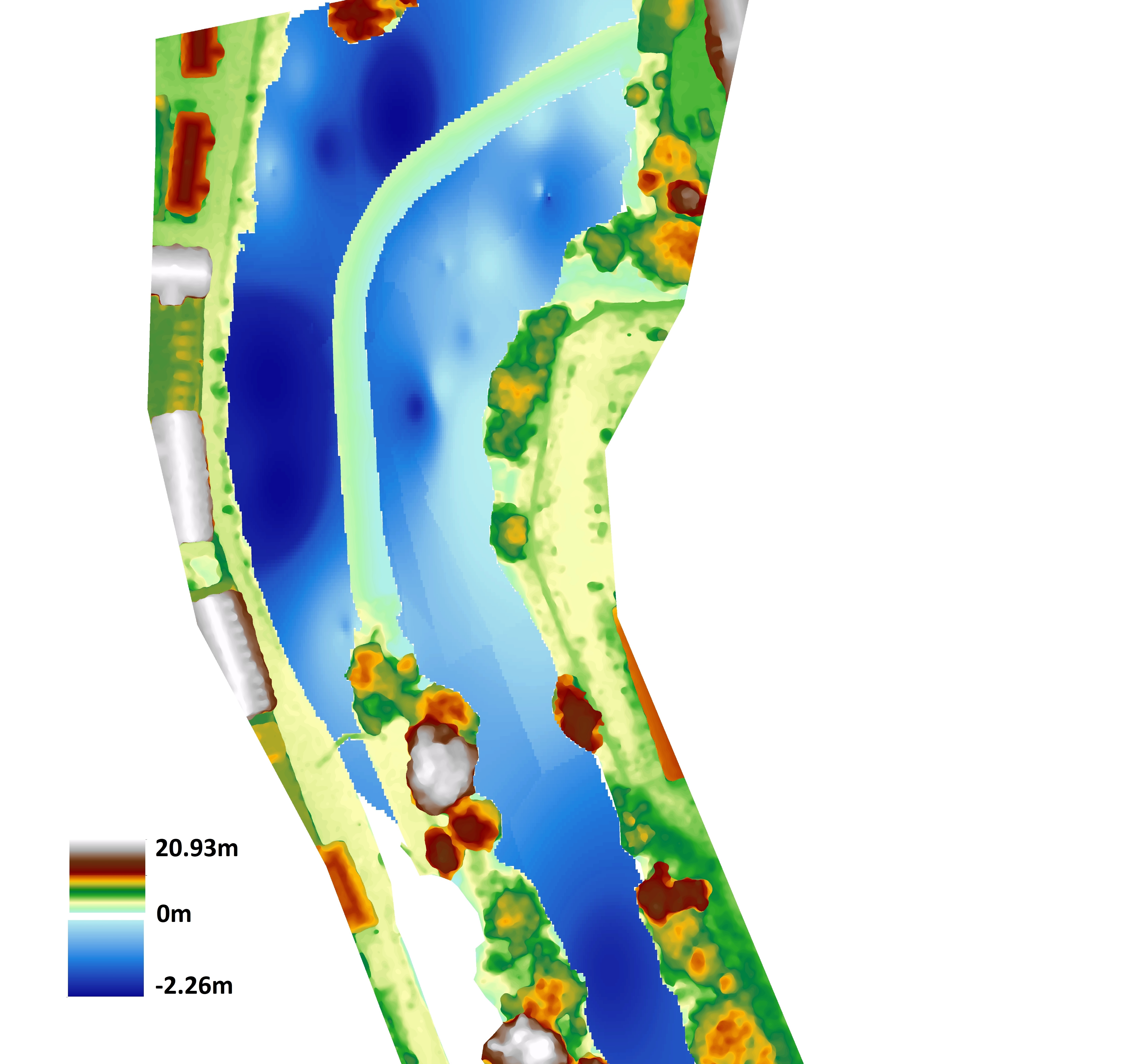 Satellites in tandem with drone imagery offer insight into position of sediment banks and flood monitoring along with risk assessment.Multispectral imagery identifies and classifies invasive species i.e macrophyte detection and classification. Elevation imagery allows for a 3d representation of river banks and may also be used to evaluate flood risk assessment. Aerial Agri Tech have created a methodology whereby elevation data collected by drone can seamlessly be merged with bathymetry data for unique mapping of the aquatic zones.
